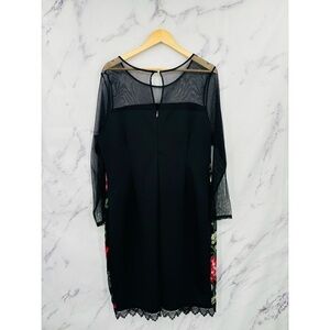 Thalia Sodi Embroidered Illusion Mesh Floral Bodycon Dress Black