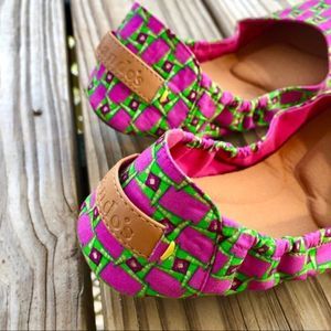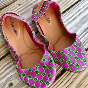 Thandos Akonmi Canvas Ballet Flats Shoes Sz 8W Fuchsia Green