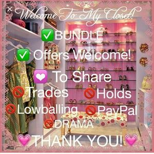 Thank you for visiting my closet. I'm Wendy, I would love an opportunity to serve YOU. Reasonable offers are welcomed, and I provide a bundle discount have a wonderful day and happy poshing.