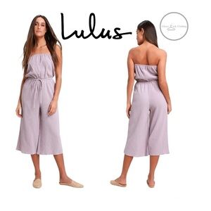 Thanks a Yacht Dusty Lavender Strapless Jumpsuit! This lightweight woven jumpsuit features an elasticized strapless neckline atop a relaxed bodice and high fitted waist (with drawstring). Wide-cut culotte pant legs finish the look. Now all you need is tickets to somewhere tropical!