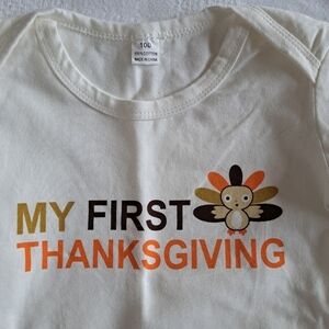 Thanksgiving boys 3 piece outfit sized 100, should fit size 2/3 easily, excellent used condition, bodysuit, pants and hat