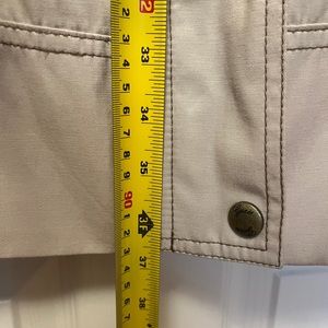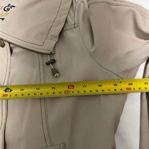 Trench coats are back but they make me feel like a detective. If you can pull off trench, here you go. Belted. Belt loops. Two side slash pockets. Toggle on oversized collar (not a hood) Fully lined. Coat hook chain.