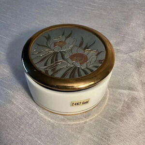 The Art of Chokin Japan Floral Lidded Porcelain Trinket Jar 24K Gold Trim