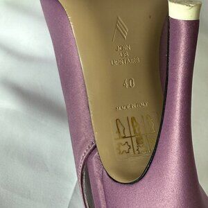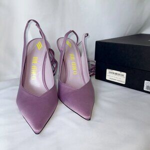 The Attico's Venus Pumps are luxurious slingback heels characterized by a sleek, pointed toe and a wrap-around ankle strap or laces, a signature stiletto heel often adorned with crystals, and a high-end construction in Italy using premium satin material. These pumps combine high-octane glamour with a sophisticated silhouette, featuring a 105mm (approximately 4-inch) heel height and a luxurious feel.