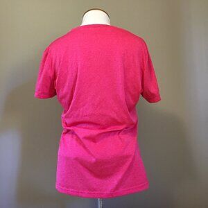 Very good preowned condition, bright pink/almost fluorescent, short sleeve, V-neck tee by The Authentic TShirt Company. Stretchy and lightweight, this shirt ensures flexibility and comfort throughout any workout.