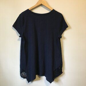 The Bay Dark Navy Blue A-Line Crochet Lace Insert Handkerchief Hem Tee