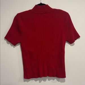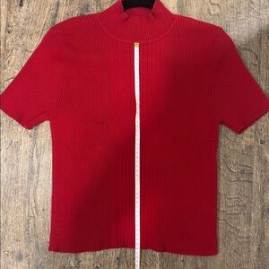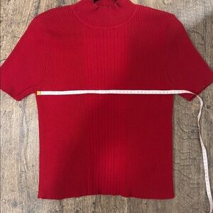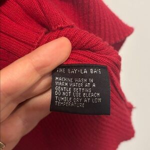 Stylish red top by The Bay La Bae. Perfect for any occasion. Please see measurements in photos :). This is in pre-owned condition. A little bit of pilling seen on surface. Small hole seen when stretched out on back of sleeve. See photos for any imperfections