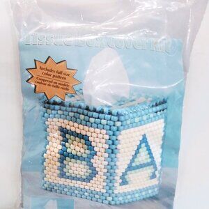 New In Sealed Package, Baby Blu/Light Yellow & Light Green - Baby's Tissue Box Cover Kit. From The Beadery Craft Projects. Other Materials Not Inc.