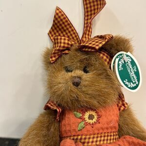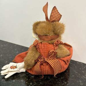 The Bearington Bears Collection 11” bear female light brown orange Dress with headband - RARE. With tags
