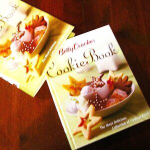 The Betty Crocker Cookie Book an imprint of Wiley. Copyright of 2003. Choose from over 240 cookie favorites from heirloom showtoppers to contemporary treats in the 322 page beautiful book of recipes and photos showing end results. When you are searching for the classics you'll find ultimate recipes for everything from chocolate chip cookies to brownies, oatmeal cookies to date bars and more. If you're looking for a sophisticate taste treat, turn to Cinnamon Expresso Cookies, Tiramisu Cheesecake Bars or Orange Madeleines. And when it's time to fill your cookie jar with kids' most-wanted, you'll discover Peanut Butter & Jelly Bars, Carmel Apple Cookies, Animal Cookies and plenty of other delectable goodies. To celebrate holidays throughout the year then turn to section with unique cookies, Chocolate Linzer Hearts for Valentine's Day or Candy Corn Shortbread for Halloween. You'll find special cookies for special diets - whether youo're baking for someone with a food allergy or wanting a dessert treat with fewer calories.