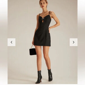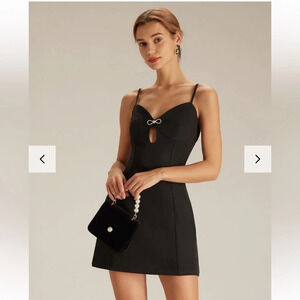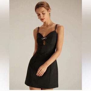 The Black V Neck Cutout Sleeveless Mini Dress size med LBD sexy rhinestone bow