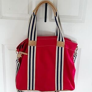The Black Dog Large Red Tote Beach Canvas Bag with Striped Straps