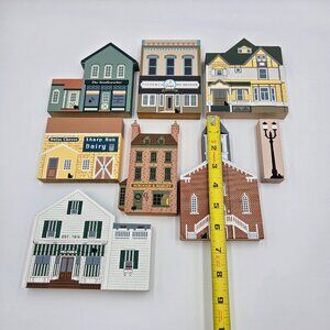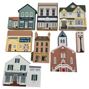 The Cat's Meow Village Vintage Lot 90’s Wooden House Town Buildings 8 Pieces