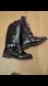 Stylish black boots with a shiny finish. Features a cute bow detail. Perfect for any occasion.