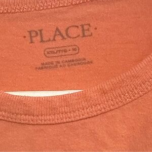 The Childrenâs Place Boys Graphic Short Sleeve Shirt- Size XXL. Gently used with moderate pilling and slight fading- worn & washed several times. Review photos closely for visual of itemâs condition and wear. Material/care tag on interior side has been previously removed & is currently missing.