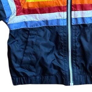 The Children's Place Infant Navy Windbreaker Sz 0-6 Mth Rainbow Hooded Lined Zip