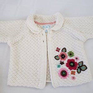 The Children's Place Knit Sweater W/Embroidered Flowers 3-6 Months