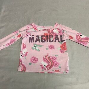 Experience enchanting dreams with this pajama set from The Children's Place, showcasing a magical unicorn theme in charming pink and green tones. The set includes a long-sleeve top and matching pants, adorned with whimsical unicorn and floral designs. Made from soft, comfortable fabric, it's perfect for a cozy night's sleep.