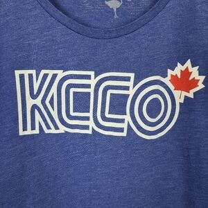 Heathered royal blue color with white Jays-style KCCO font and red maple leaf
