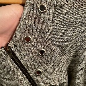 New with tag! This top is made in the USA. The flecks of gold give it a very dressy look. Modern with the 5 circles at the bottom and top along with a side zipper that actually works. Black, Grey with gold tones.