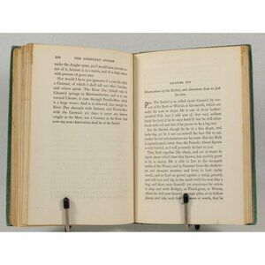 It is a green hardcover book with the title and decoration on the covers and spine in gilt on a red field. This book even includes a little song with the musical notation. It is a celebration of the art and spirit of fishing in prose and verse.
