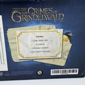 The Crimes of Grindelwald Glass Mug. The Kelpie mug. It is a Loot crate exclusive. It is officially licensed and is part of the Fantastic Beasts franchise. It is a 12 ounce mug. It is microwave safe. It is from 2019. The box has some very slight wear being in storage.