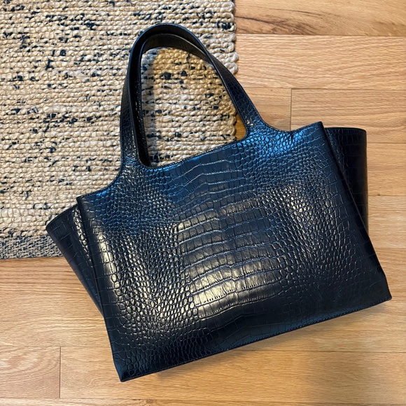 The Curated black crocodile tote bag, discontinued style