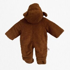 Introducing our adorable Teddy Bear Baby Suit, specially designed for your little one aged zero to six months. Crafted with utmost care and attention to detail, this cozy onesie envelops your baby in comfort and cuteness. Featuring a charming Teddy Bear motif on the front, it adds a delightful touch to your baby's wardrobe. The suit comes complete with covered feet to keep tiny toes warm and snug. Plus, the hood is adorned with cute bear ears, adding an extra dose of charm to your baby's ensemble. Lined with soft cotton, this suit ensures gentle comfort against your baby's delicate skin. Wrap your little bundle of joy in love and warmth with our Teddy Bear Baby Suit, the perfect choice for both playtime and naptime.
