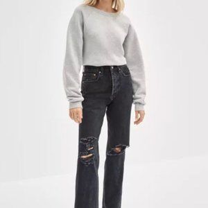 Inspired by the zeitgeist of ’90s grunge, the Joni has a super high waist and a loose leg that hits at the ankle. Slouchy and oversized, these are big pants with a bad attitude — or a good one, depending on your perspective. They’re made from premium Italian 100% organic cotton — material that wears in well, but never wears out. This version comes in a black wash with distressing and a clean hem.