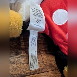 Mickey Mouse Plush – Red – Large approximately 20 " long . Purchased at the Disney Store. Used as decor very clean excellent condition.