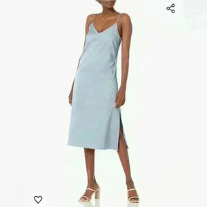 A lightweight silky lingerie-inspired style with a hint of stretch and a body-skimming fit; Dress it up or wear with sneakers for a versatile look; Side slits and adjustable straps, midi-length silhouette