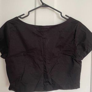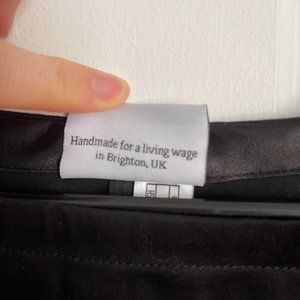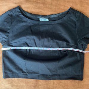 Beautiful ethically made crop top with cap sleeves. Excellent used condition, only worn a few times. Made with (I think) a poly-cotton blend. Nice medium-to-heavy weight fabric with a lovely shine. Would fit S-M depending on the fit you're looking for!
