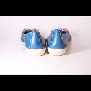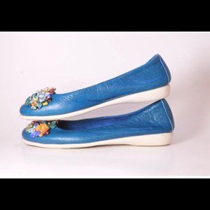 Rare blue The Flexx Leather Ballerina Flats with Leather Flower Details
