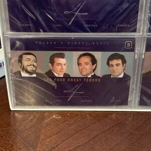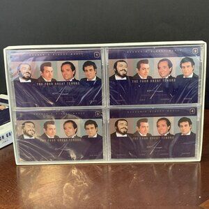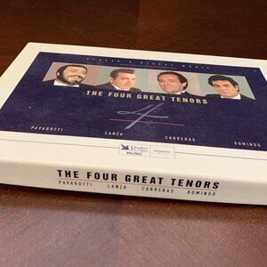 This is a 1999 4-cassette collection from Reader’s Digest Music featuring “The Four Great Tenors” – Luciano Pavarotti, Mario Lanza, José Carreras, and Plácido Domingo. The perfect addition for collectors or classical music lovers.