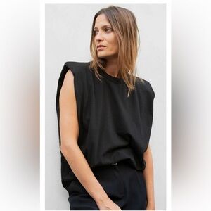 The Frankie Shop Eva Padded Shoulder Muscle T-Shirt Black Size Extra Small.