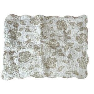 The Global Collection Quilted Floral Pillow Shams Scalloped Trim White Beige