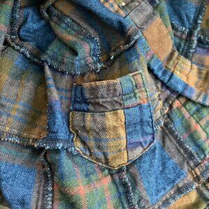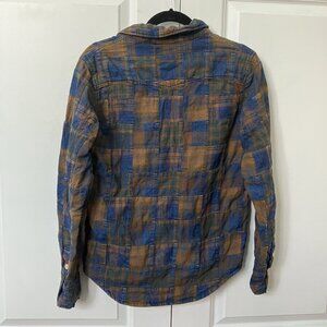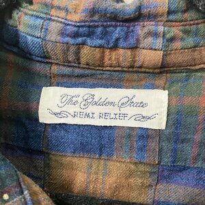 The Golden State Remi Relief Shirt Mens S Patchwork Flannel Blue Plaid Button Up