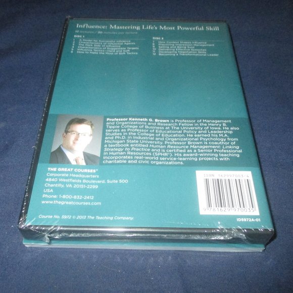 This is one of the dvd series of courses: Great Courses: Influence: Mastering Life's Most Powerful Skill which is unopened and in great condition with no noticeable damage to the seal. It is sold as is.