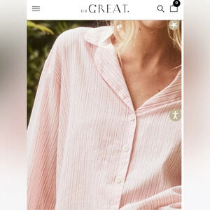The Great. The Panama Shirt & Smocked Shirts in pink Slumber Stripe