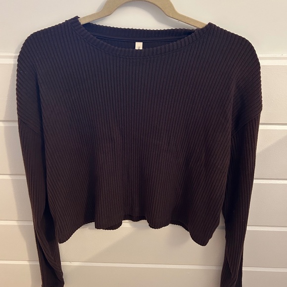 The Group Babaton Chocolate Brown Ribbed Long Sleeve