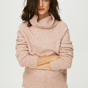 In excellent condition. The Group Babaton from Aritzia Plutarch sweater. This is a funnel-neck sweater with a boxy silhouette and a relaxed, raglan shoulder. This version of the Plutarch is knit with a lightweight Italian-milled yarn that contains alpaca and wool, so it’s incredibly soft, naturally breathable and very warm. Content: 43% nylon, 21% acrylic, 16% alpaca, 10% viscose, 9% wool, 1% elastane. Flat lay measurements: 19" pit to pit, 22" length.