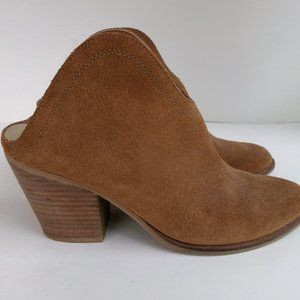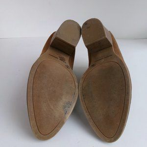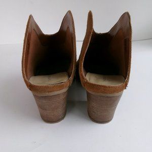 The Heeled Mule in Cognac Suede with Wood Stacked Heel Size 9