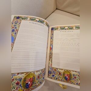 Beautifully illustrated Holy Bible with a rich burgundy cover. Features intricate gold detailing. Never read. The cover shows minimal signs of use.
