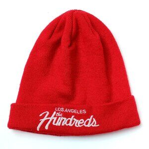 The Hundreds red toque / beanie with “Los Angeles the Hundreds” in white embroidery on front