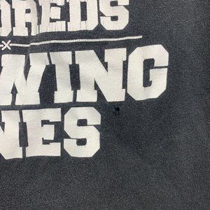 Tee contains few holes, slightly worn, otherwise in good condition.