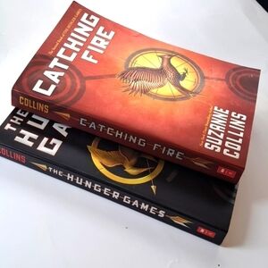 The Hunger Games books 1 & 2 Catching Fire novels by author Suzanne Collins