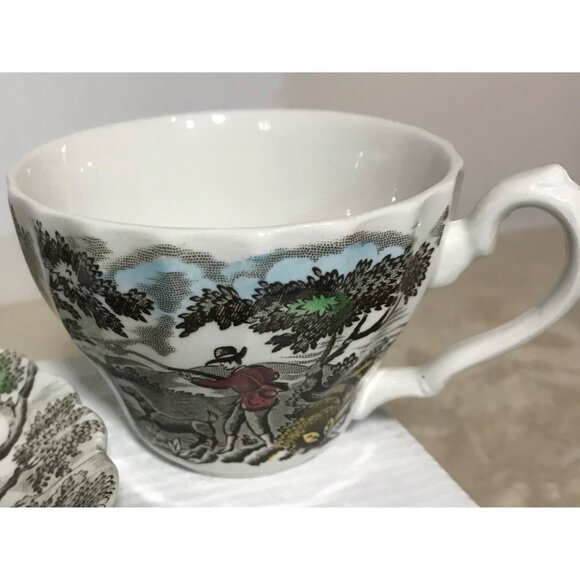 The Hunter By Myott Tea Cup & Saucer Set of 4 Permanent Colors England
