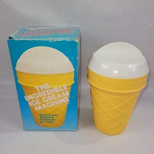Complete in the original box makes 8 oz of ice cream by turning the lid by hand.