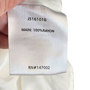 100% rayon. Dry clean recommended. Fully lined. Surplice neckline. Elasticized waist. Contrast eyelet trim and embroidery. Made in China Revolve Style No. JTST-WD94. Manufacturer Style No. J5161010.