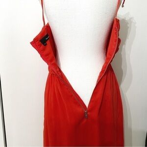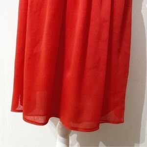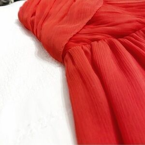 THE KOOPLES CARDINAL RED SPAGHETTI STRAPS PLEATED FLOWY MINI CHIFFON DRESS, Sweetheart neckline - Pleated & seam detailing throughout - Ruching at waist - Adjustable spaghetti straps with beaded detailing -Fully lined - Exposed back zipper - silver metallic ornament on the straps for a thoughtful detail - many layers on the lining yet not puffy - flowy - girly - bustier style, spring and summer favorite for a first date, day -to night party, wedding guest outfit and more, with sandals or pumps.